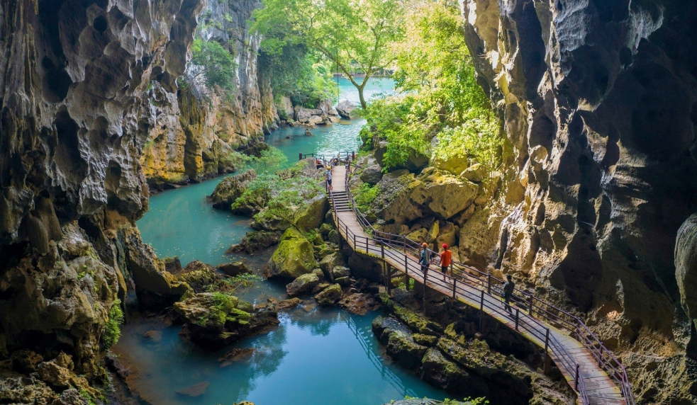 09:00 – 11:45: Start your journey to explore Phong Nha Ke Bang National Park with the first destination: Chay River - Dark Cave. Participate in the many adventure activities: long zipline, swimming, kayaking, adventure course, water zipline,… The venture into the cave in the dark for cave exploring and mud bathing.